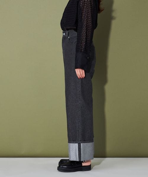 あえて広めの幅にロールアップしたインパクトのあるデザインのデニム。