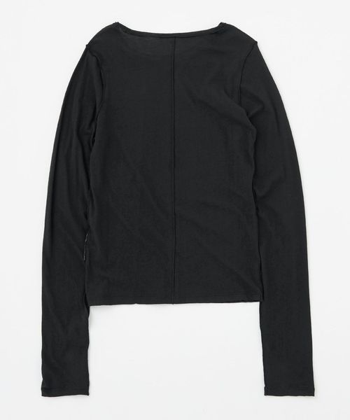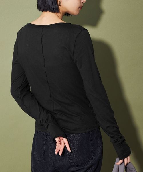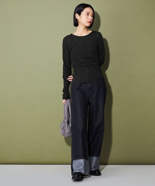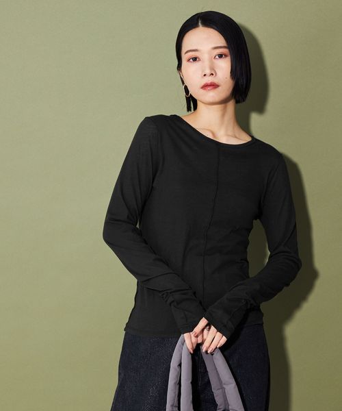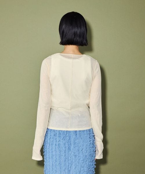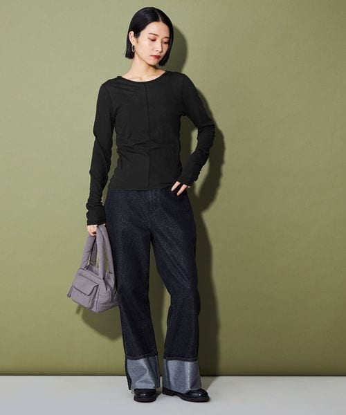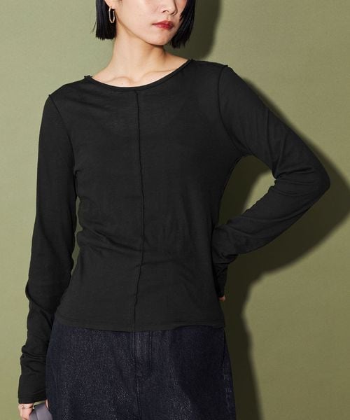 ニットのインナーにレイヤードしたり、同商品を2色重ねて着用していただいても今っぽいスタイリングになります。