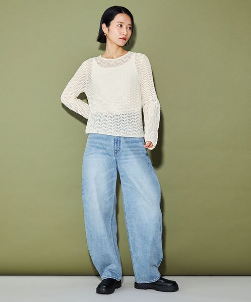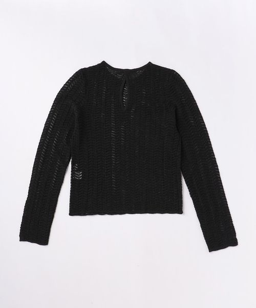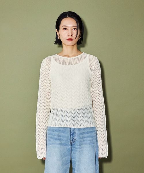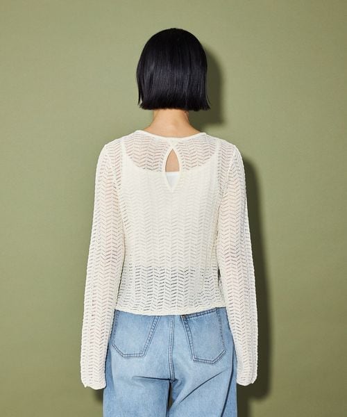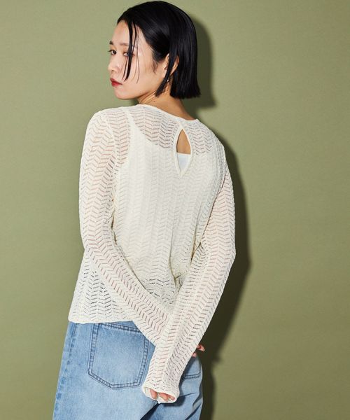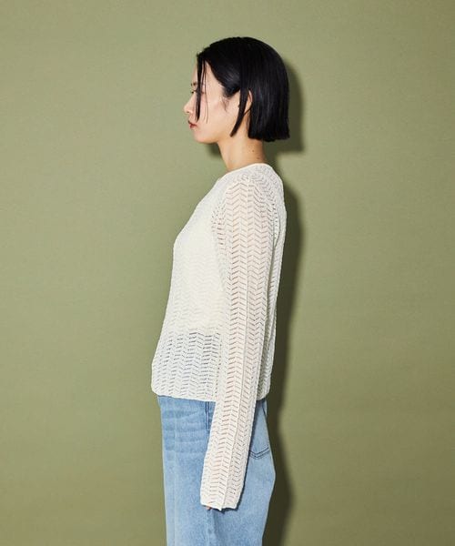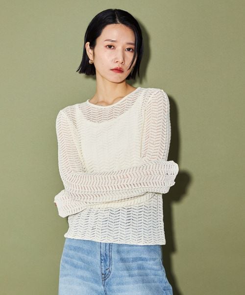 編み地も甘くなく着やすいレース柄にしているのもポイント。