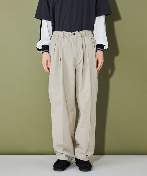 クリースも入っているのでキレイメにもカジュアルにも幅広く着用出来る気の利いたイージーパンツです。