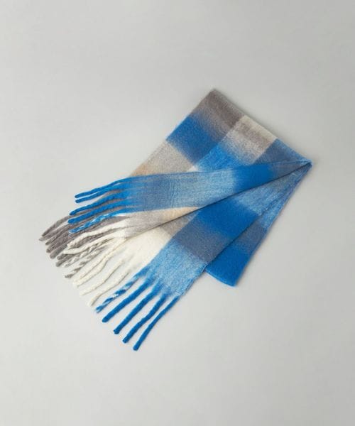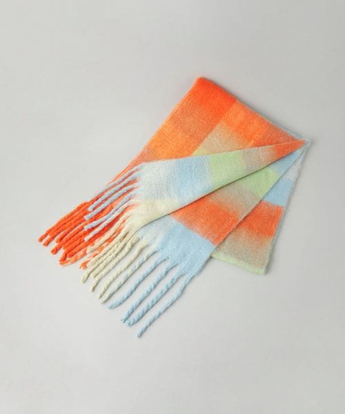 ビッグフリンジが目を惹くオリジナルカラフルチェックストール