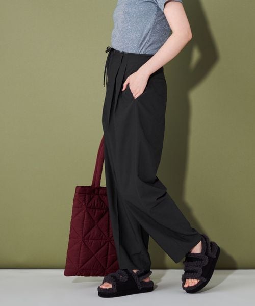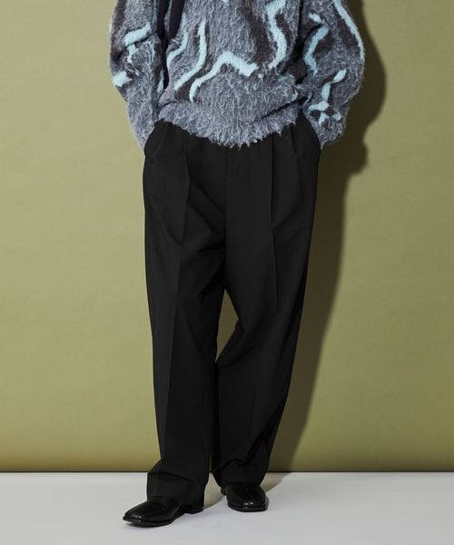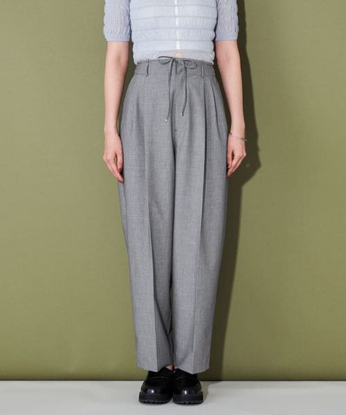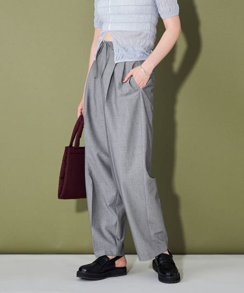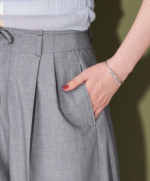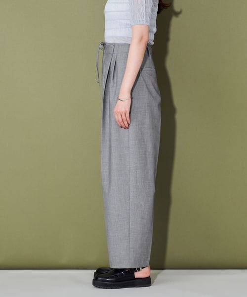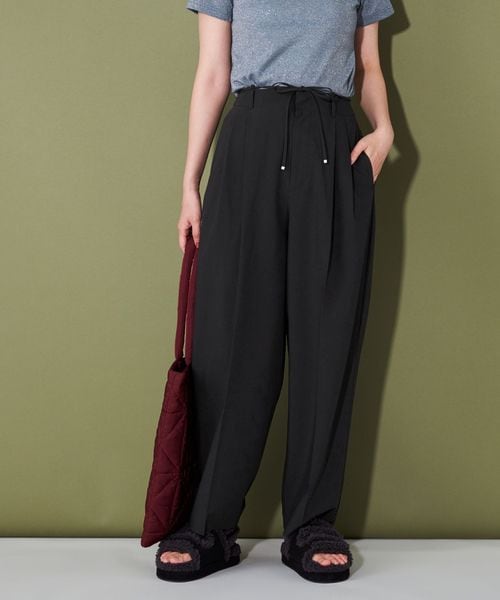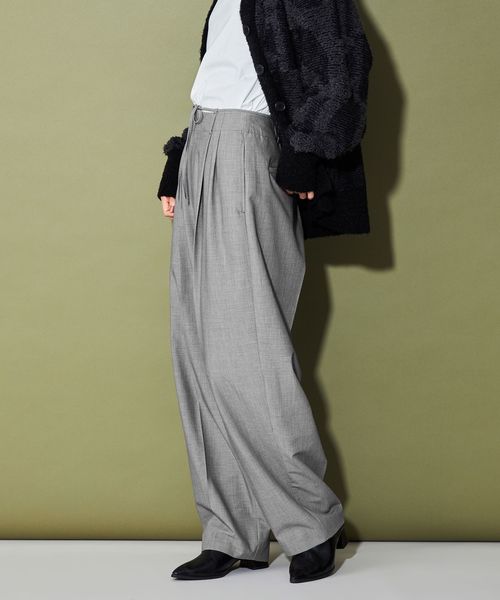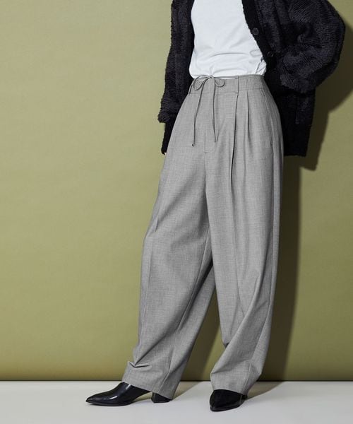 どんなアイテムにも合わせやすいシルエットで、旬なスタイリングを作り上げるタックワイドパンツ。