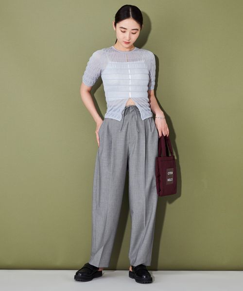 きれい目なアイテムながら、カジュアルな雰囲気で取り入れやすく、センターにはしっかりとプレスを入れているので、すっきりとした見え方になるのがポイント。