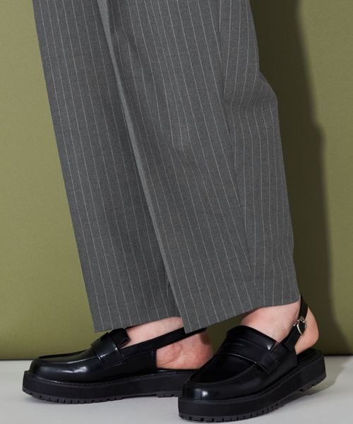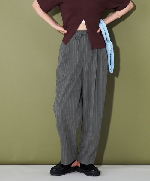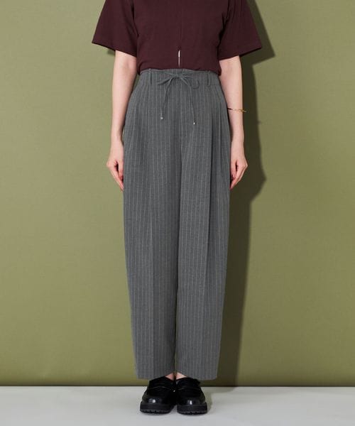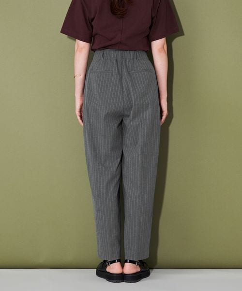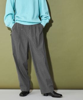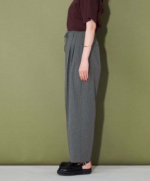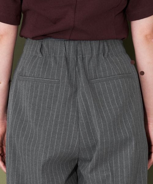 ベーシック使いのできるシルエットが特徴的なストライプ柄スラックス