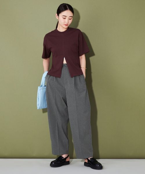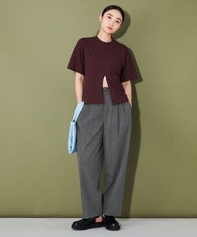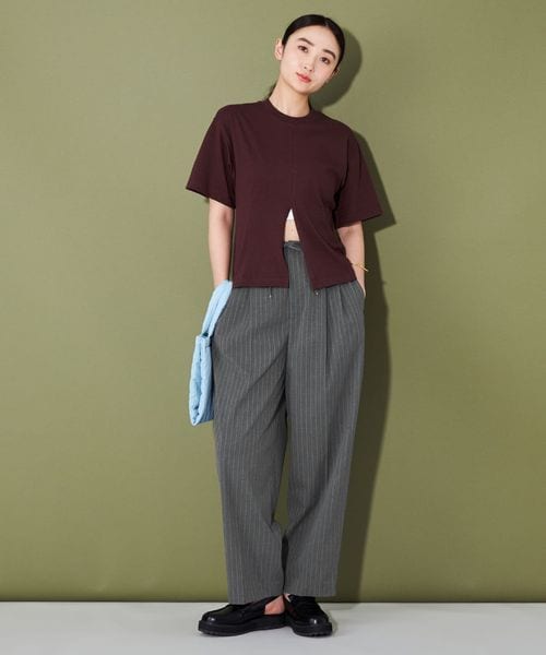 きれい目なアイテムながら、カジュアルな雰囲気で取り入れやすく、センターにはしっかりとプレスを入れているので、すっきりした見え方になるのがポイント。