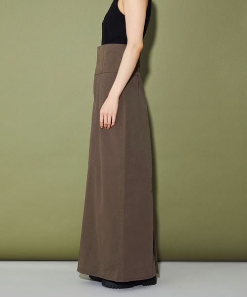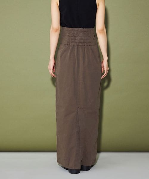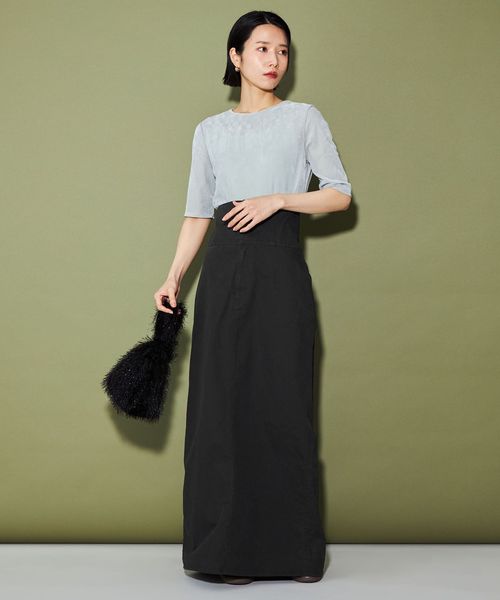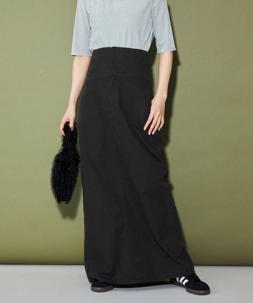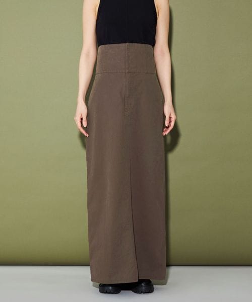 すっきりとしたナローシルエットに、ビスチェ風のハイウエストのデザイン。