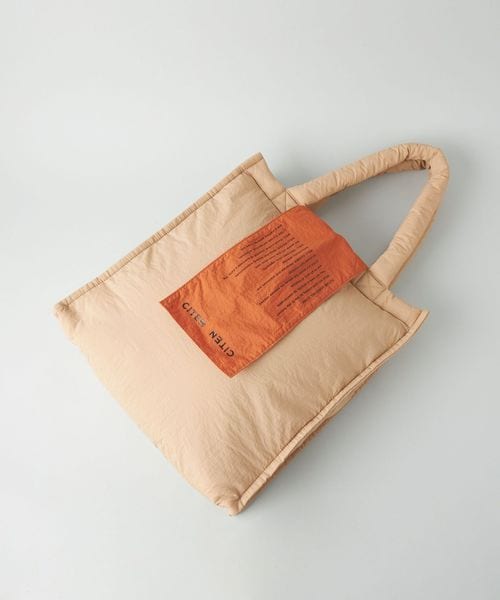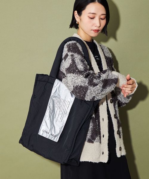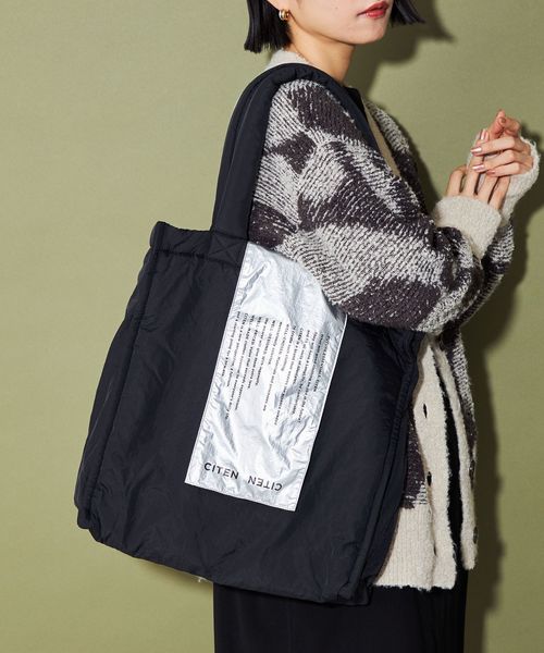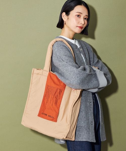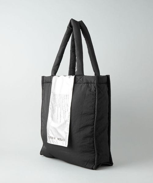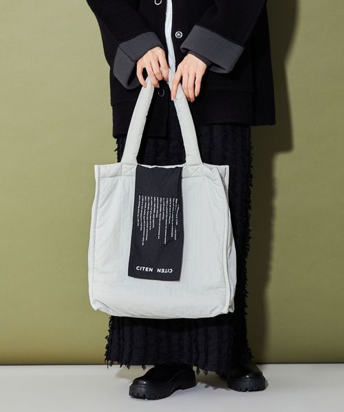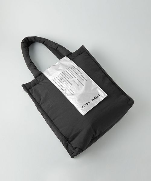 CITENのブランドステートメントを大き目なタグにプリントしBAG正面に施しアクセントに。