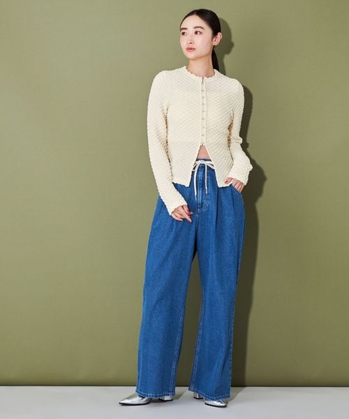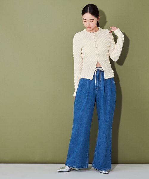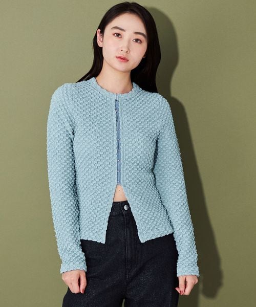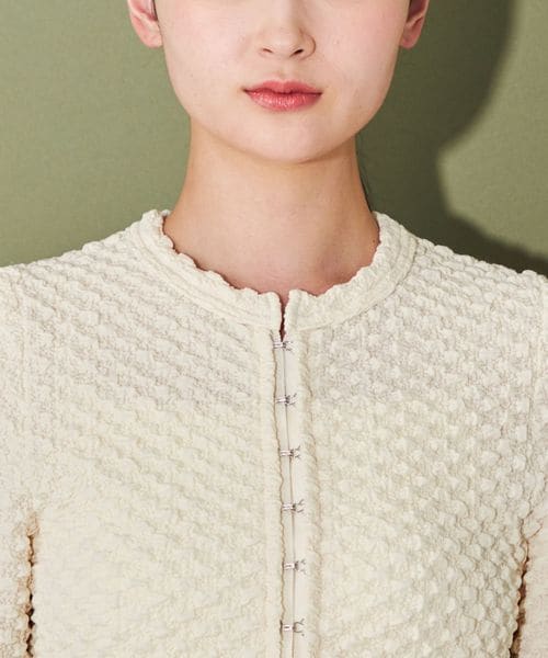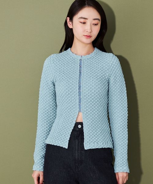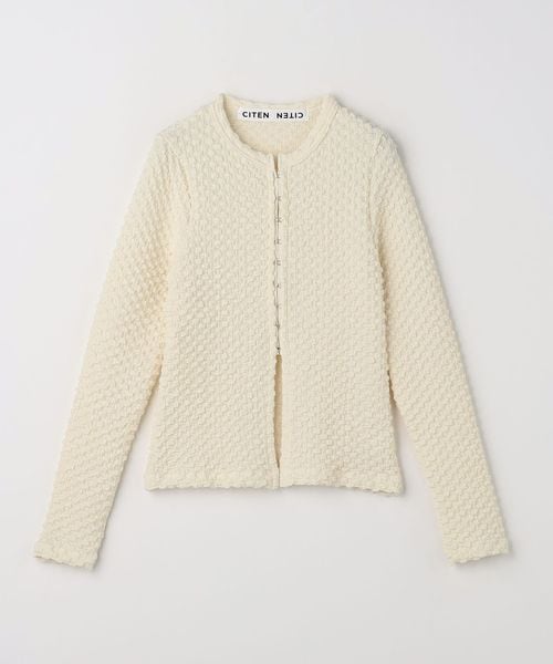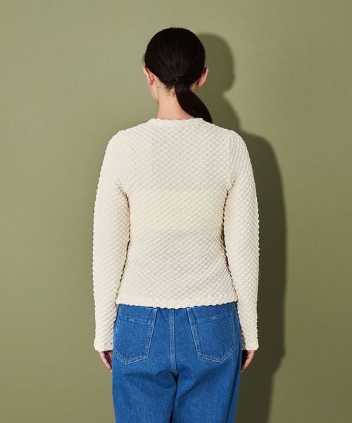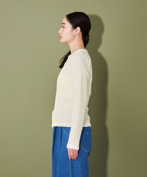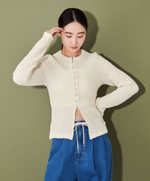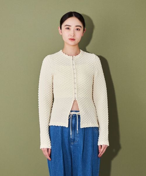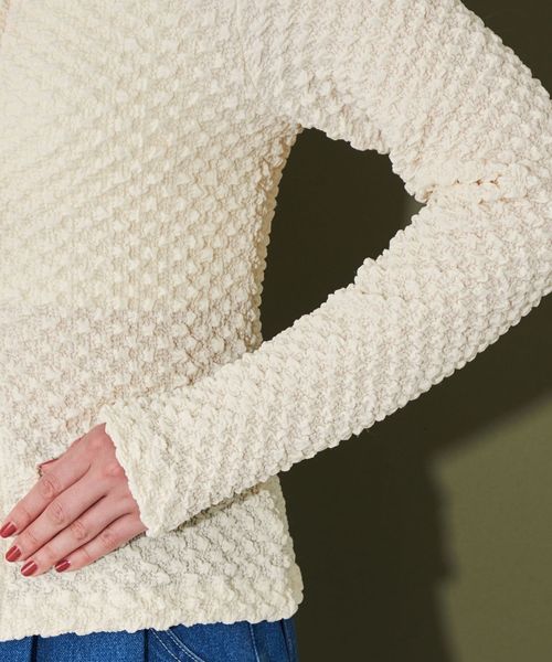 ポコポコとした表面感ある素材にホックディティールがポイントの2wayトップス