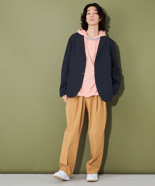 同素材のスラックスとのセットアップとのコーデはもちろん、シェフパンツなどクリース入りのカジュアルパンツなどキレイ目に合わせるのがおすすめです。