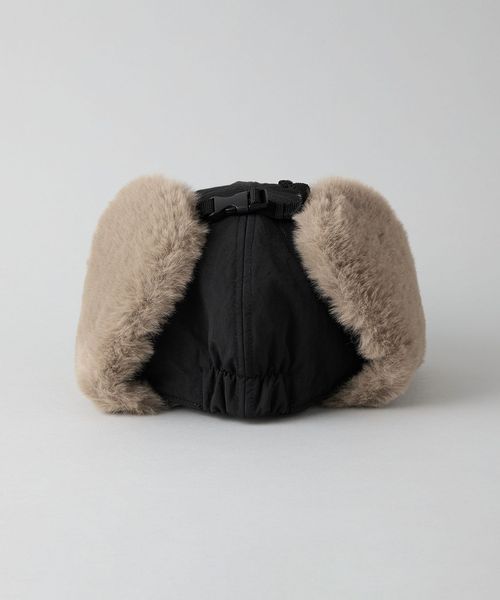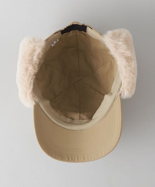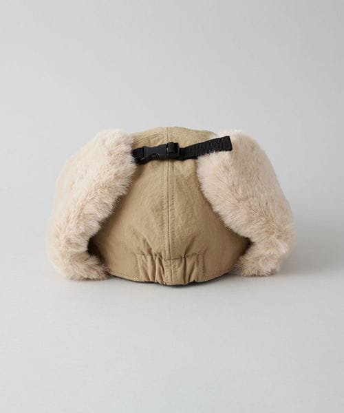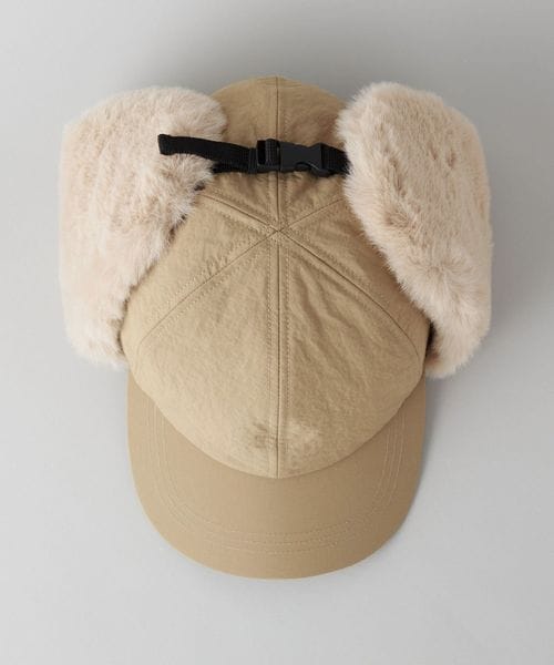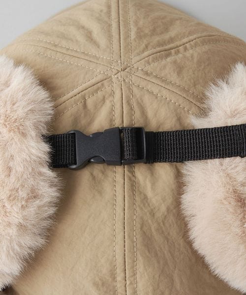 毛足の長いボアを耳あて部分に使用したフライトキャップ。