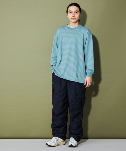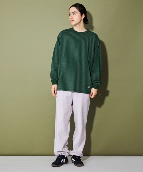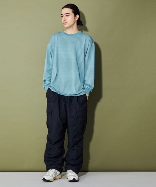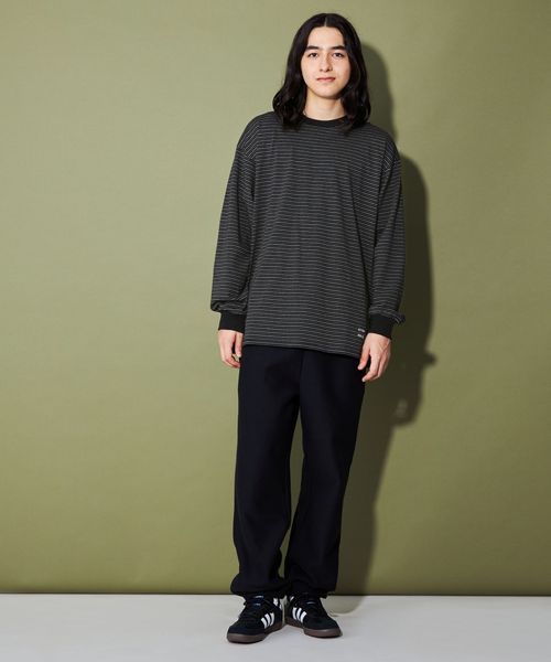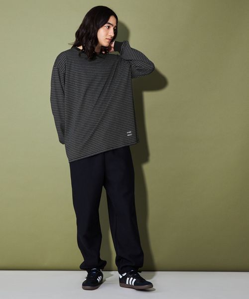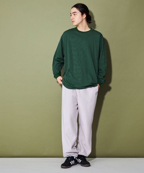 汎用性が高く様々なアイテムに自然と馴染むボーダー生地なので、デニムやチノパンツと合わせはもちろん、スラックスやジャケットのきれいめのスタイリングにも違和感なく合わせられる便利な一着です。