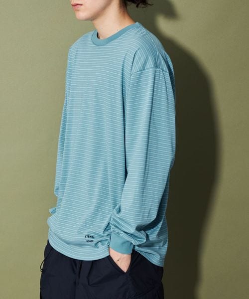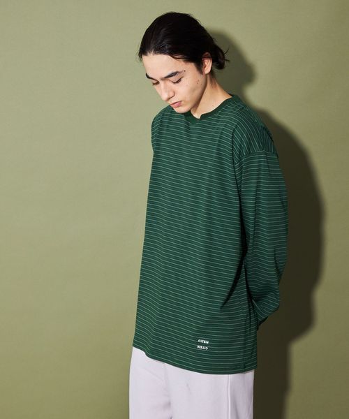 力の抜けたリラックス感が魅力なマルチカラーのピンボーダーロングスリーブTシャツ