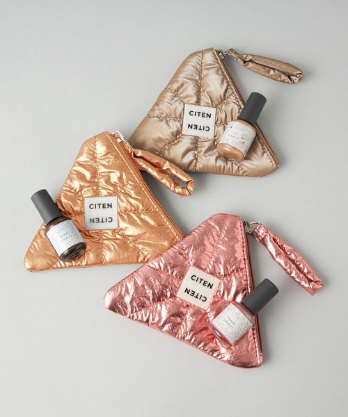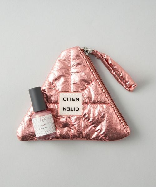 アップリフト ネイルカラーの美しい光沢感に合わせてメタリック素材を使用したCITENアイコンのパデッドキルティング仕様のポーチをお作りしました。