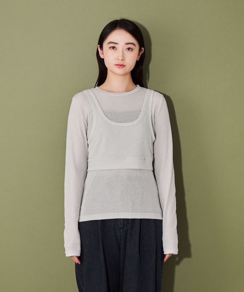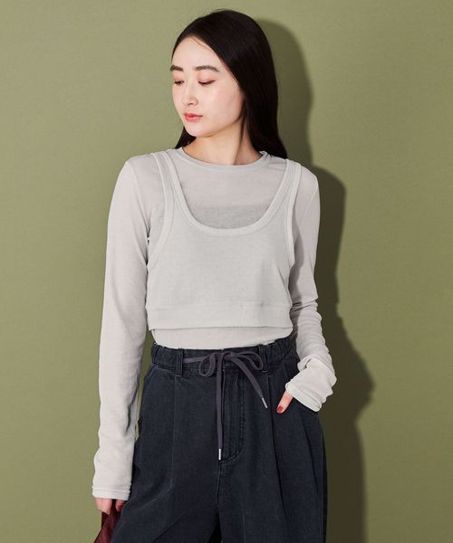 シアーロングスリーブTとタンクトップのセットでレイヤードスタイルが完成