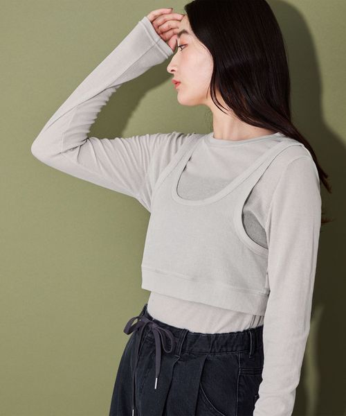ロングスリーブとビスチェのように重ねて着るタンクトップのセットです。