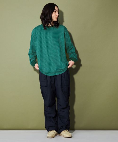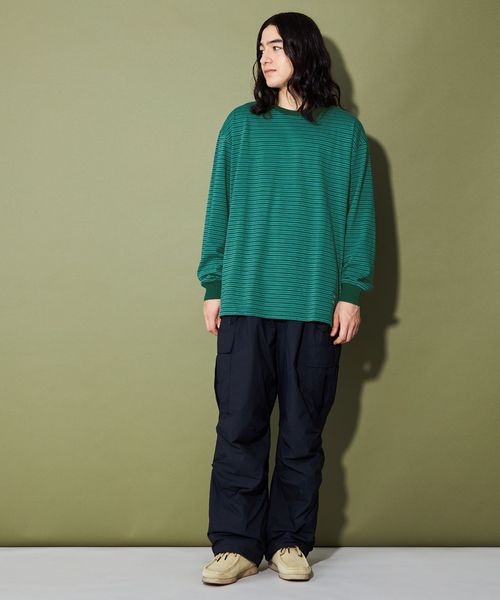 馴染みやすいボーダーデザインは様々なアイテムと合わせやすく汎用性の高い一着です。
