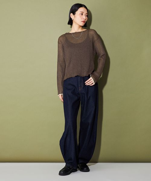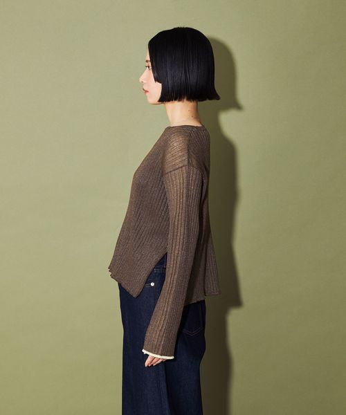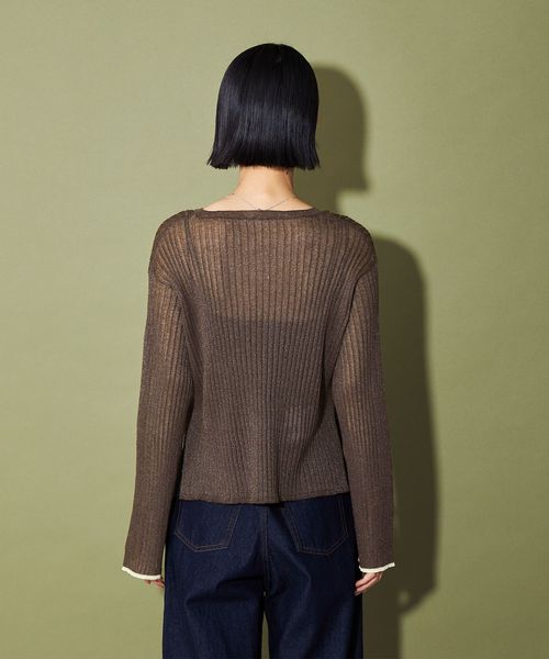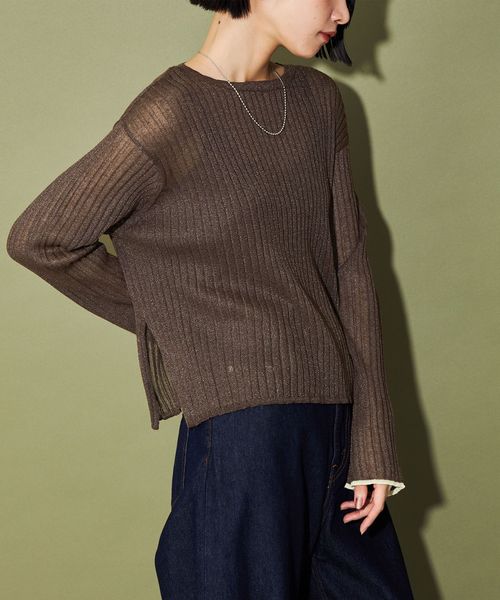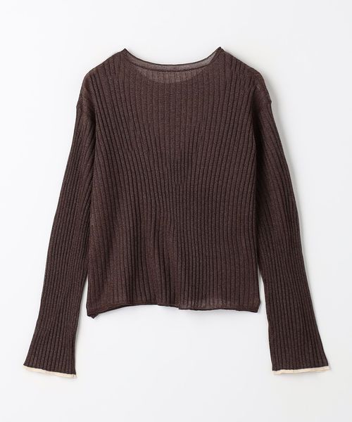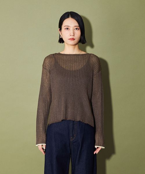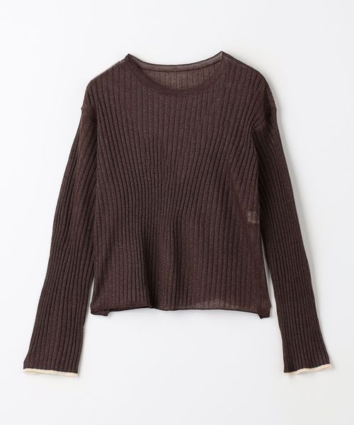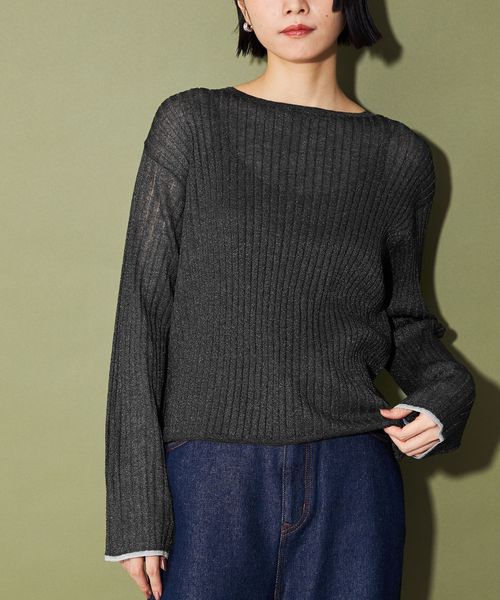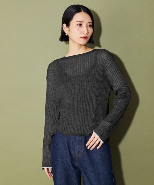 ハイゲージでシアー感のある、ギラギラし過ぎない程良いラメ感のニットトップ。