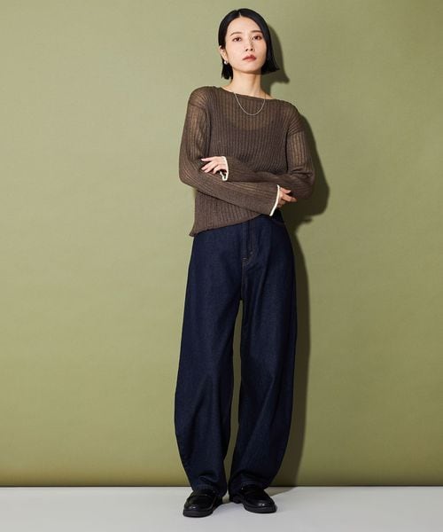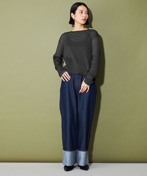 ラメが撚糸された繊細な細番手の糸をカジュアルな印象のワイドリブ編みにしています。