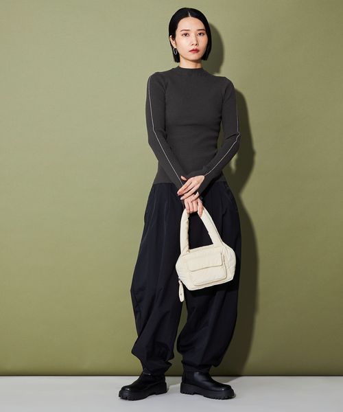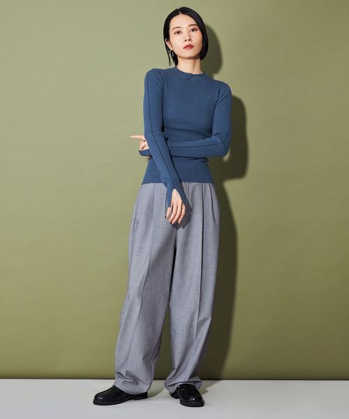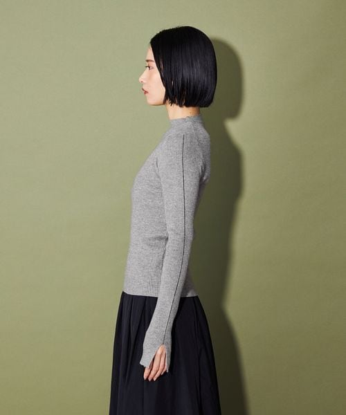 肌寒い時期に欠かせない、ベーシックなモックネックニット。