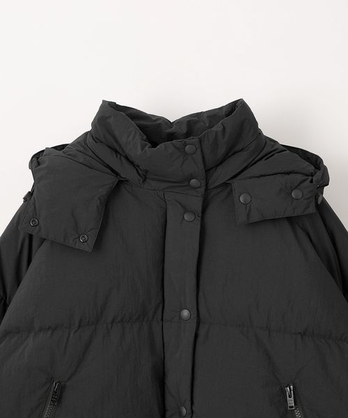 大きめのステッチパックが今っぽい雰囲気で、フードを外すとスタンドネックで顔周りもすっきりとした印象に。