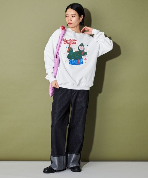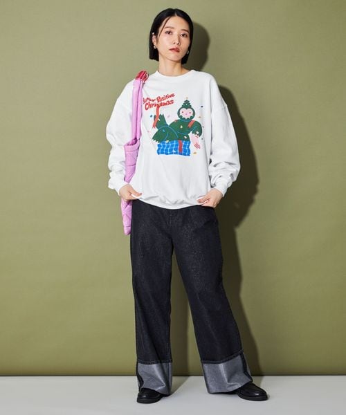 ボディは1枚で着映えするシンプルなルーズスウェットなので、合わせるアイテムを問わず着回しできるアイテム。