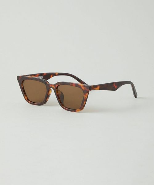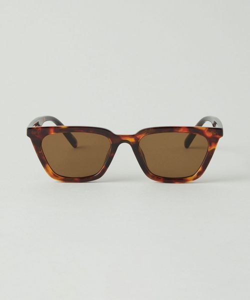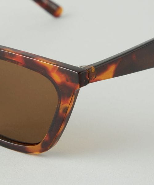 少し太目のべっ甲柄のフレームとブラウンレンズの組み合わせで上品な印象のウェリントン型ファッショングラス。