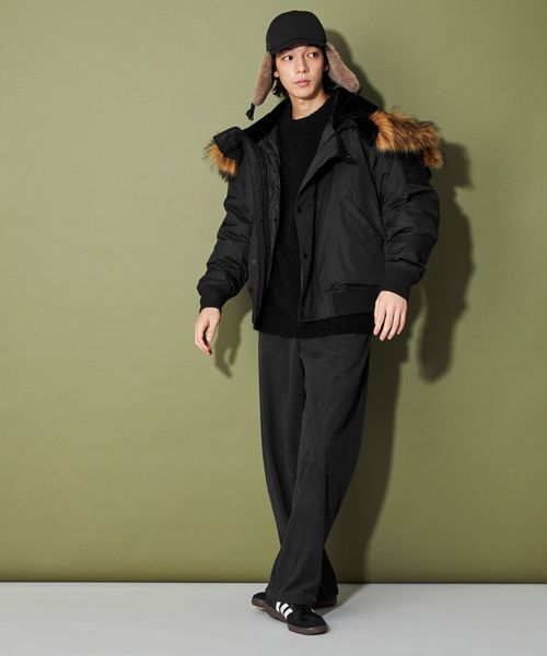 今年らしくデザインされたフライトジャケットはカジュアルなトップスをベースに太めのパンツとの組み合わせがオススメ。