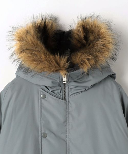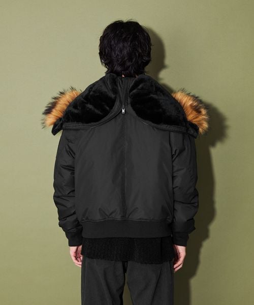着用時はフードを開けて着用する事で他には無い特徴的なシルエットを体感できます。