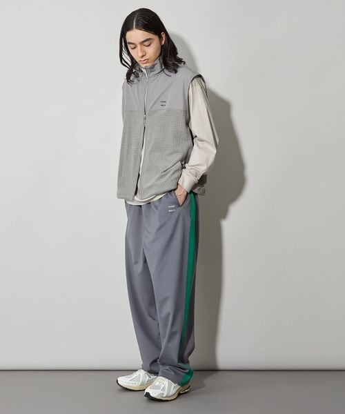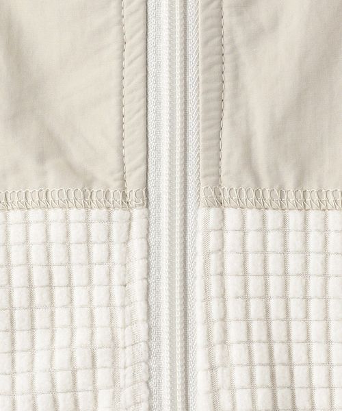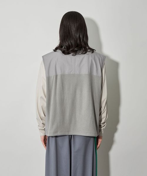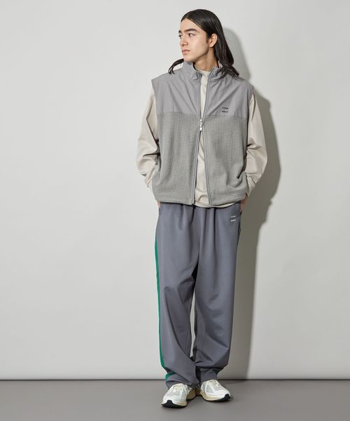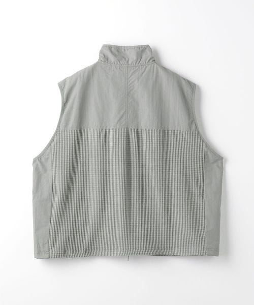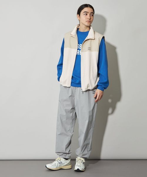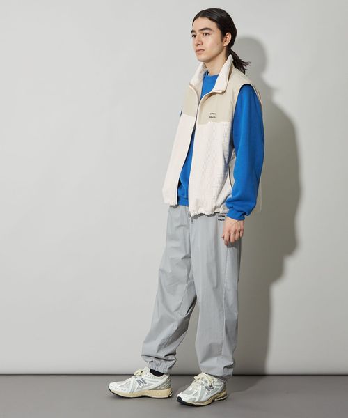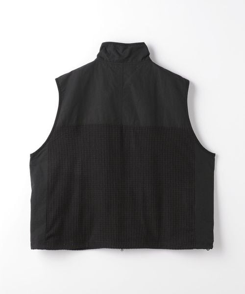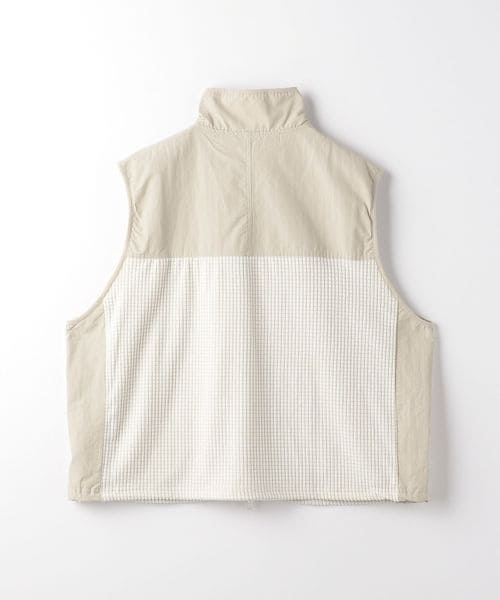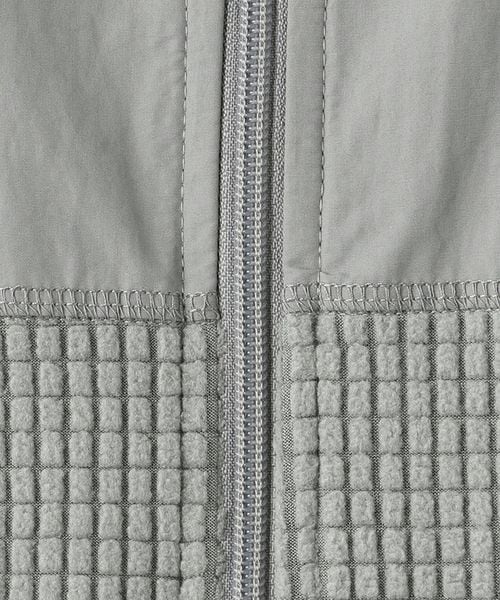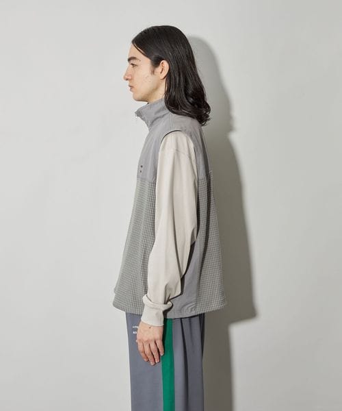 スポーティーなブロックフリースにアウトドアによく使われるコットンナイロンのしっかりとした素材を切り替えたスタンドネック仕様のベストです。