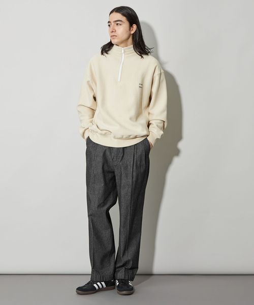 デイリーからウィークエンドまでゆるくはける、ウエスト・腰回り・裾まで全体的にルーズにデザインしたデニムスラックス。