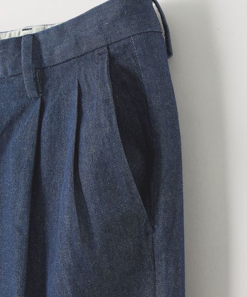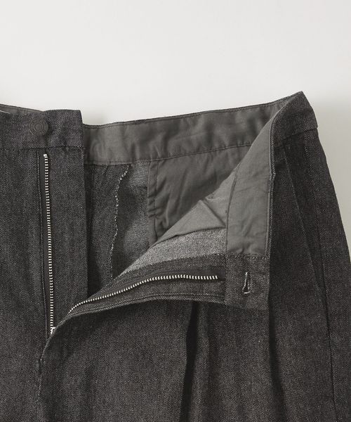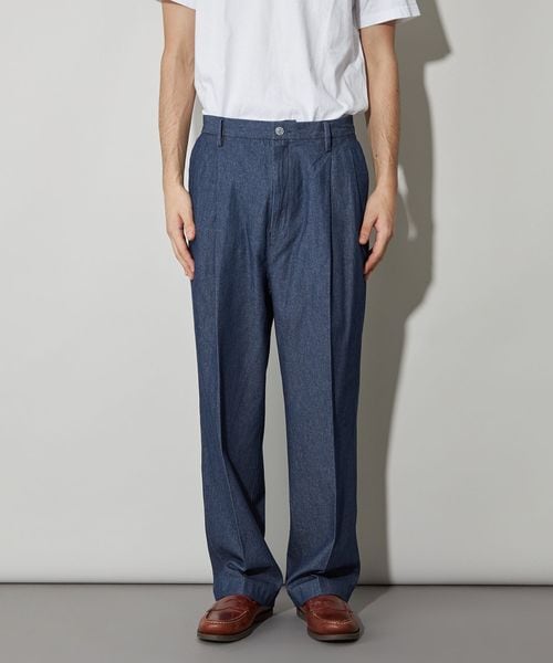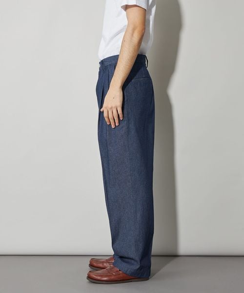 カジュアルにスラックスを楽しむために開発したワイドシルエットのデニムスラックス