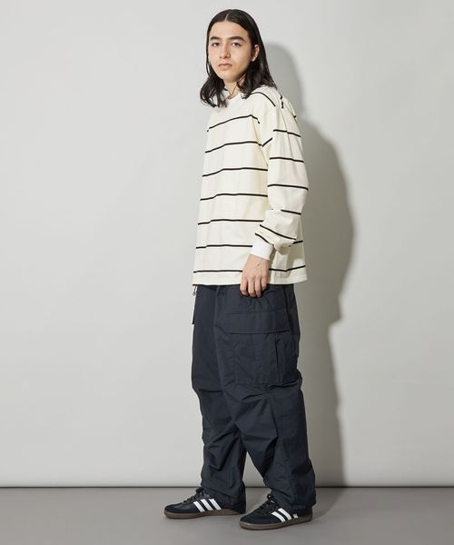ボトムスもデニムやカーゴパンツなど合わせるアイテムを選びません。