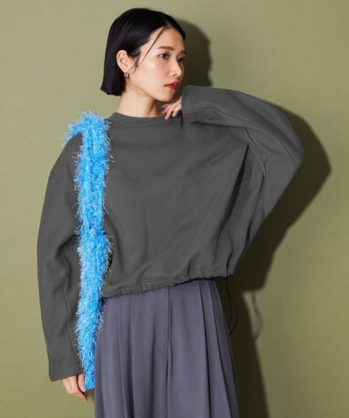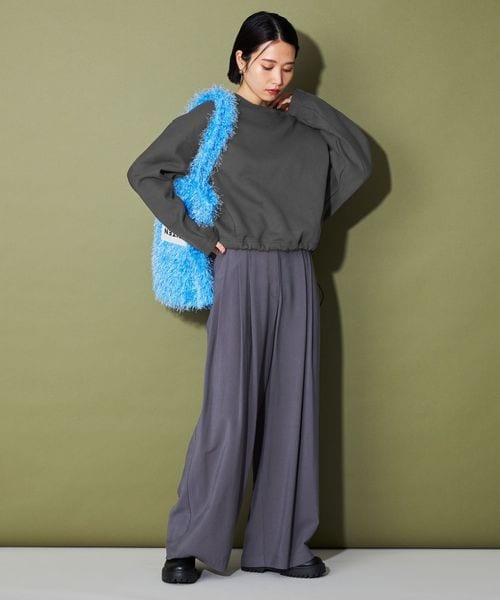 少し短めの着丈ですが幅はあるのでバランスは取りやすく、デニムやスラックス、ナロースカートなどにも合わせやすいアイテムとなっています。