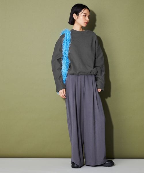 裾をキュッと絞ってバルーンシルエットで着用いただくと◎。