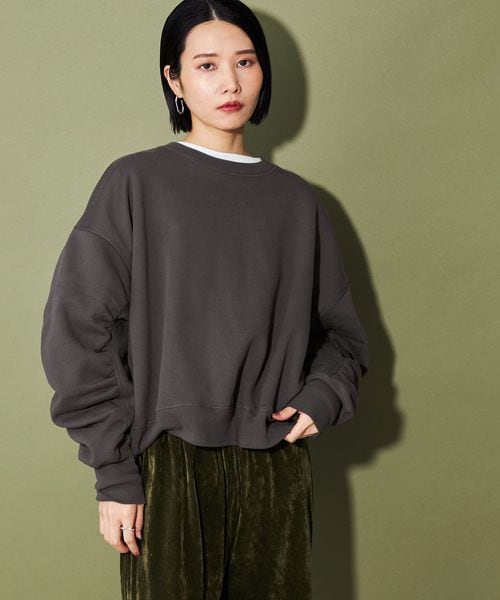 袖のギャザーデザインが特徴のスウェットプルオーバー