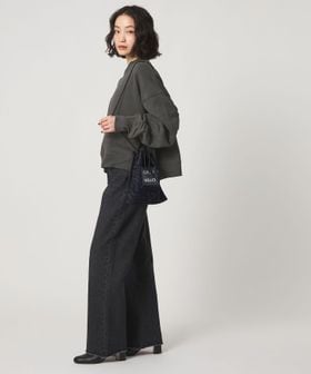 ドロップショルダーのゆるめのシルエットで、ギャザーの寄った袖が今年らしいポイント。
