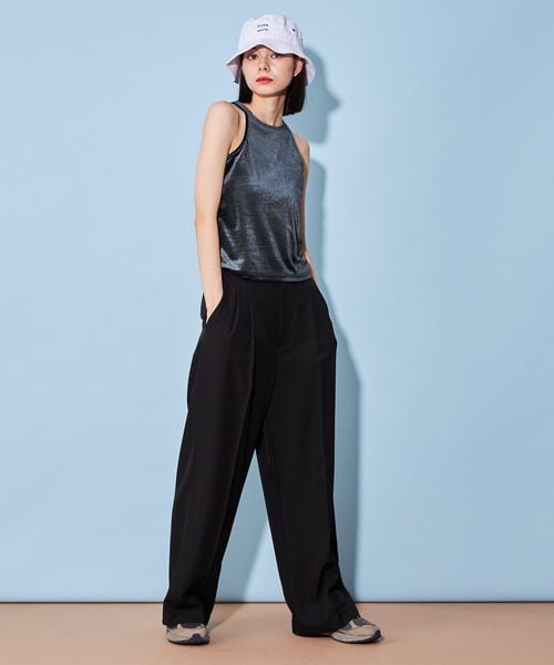 トレンドのベロア素材が目をひくアメリカンスリーブのタンクトップ
