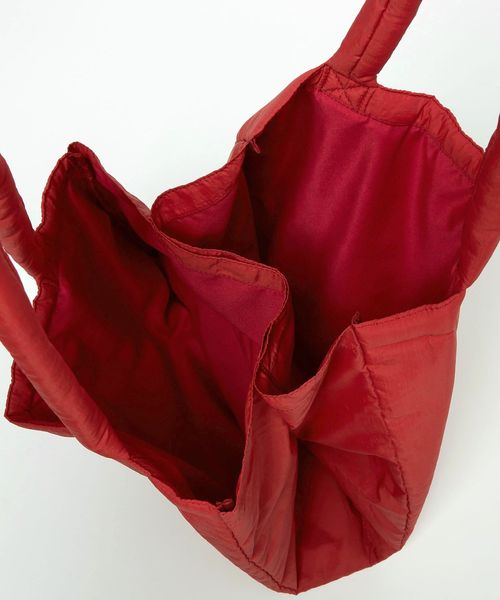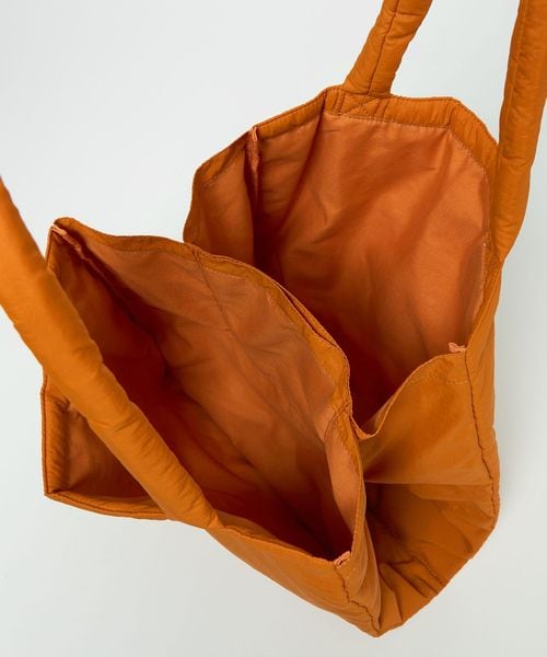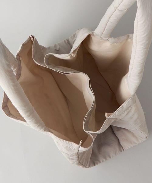 程よいパファー感のある、A4サイズがすっぽり入るトートバッグ。