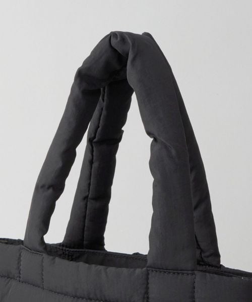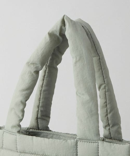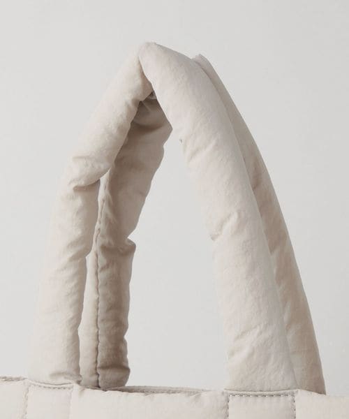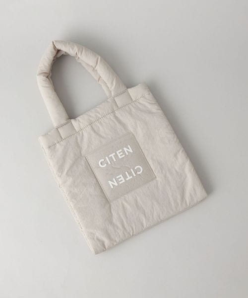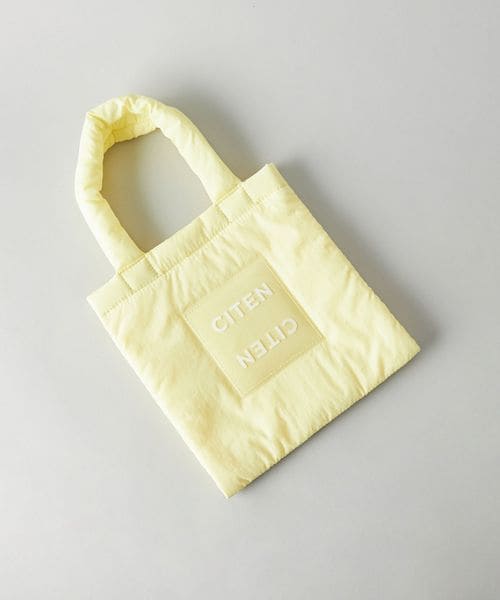 パファー感とクリアロゴパーツがアクセントのミニトートバッグ