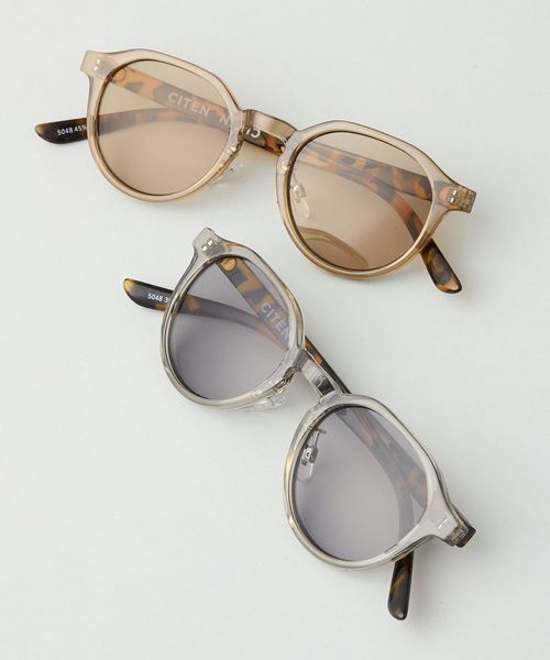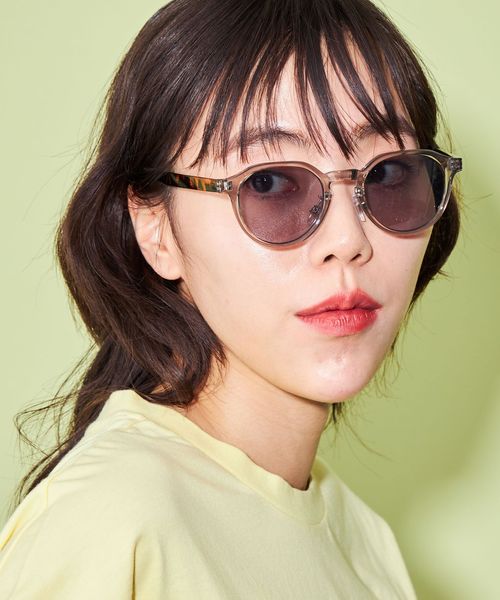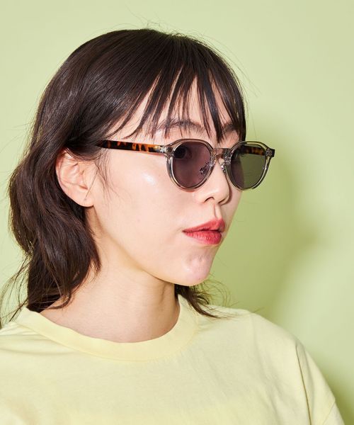 抜け感のあるスモーククリアフレーム×カラーグラスのクラウンパント型のファッショングラス。