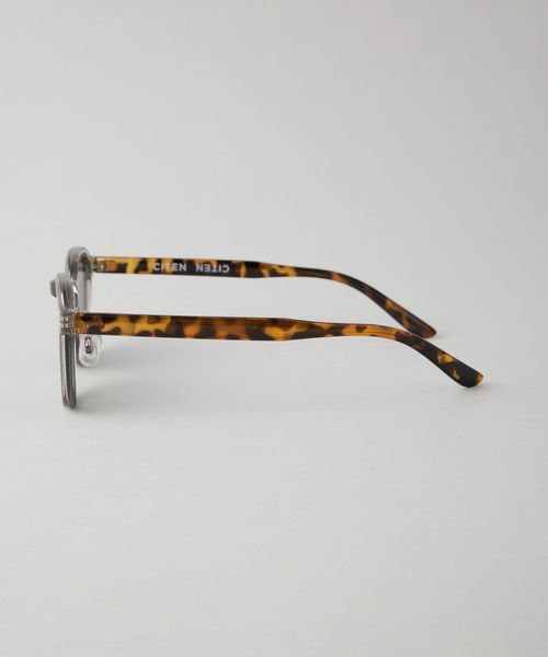 程よい厚みのフレームとサイドのデミ柄のテンプルがアクセントになっています。
