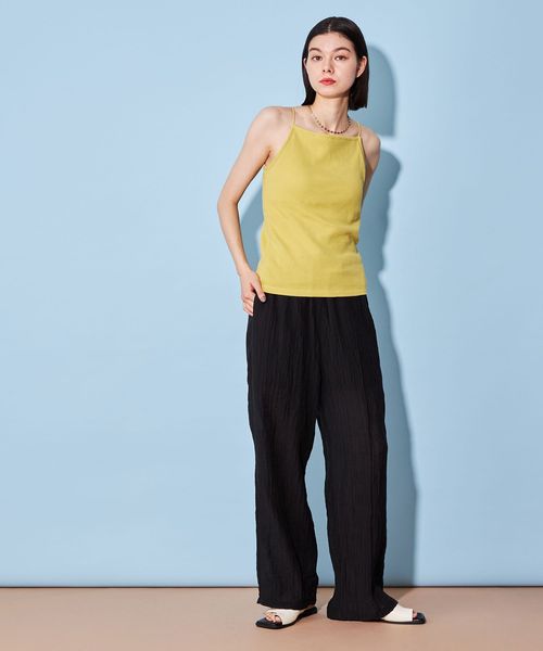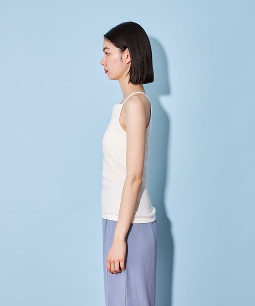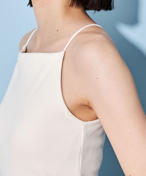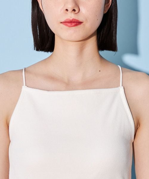 胸元の位置が上がっているキャミソールなので、胸元の露出が少なくヘルシーに着ていただけます。
