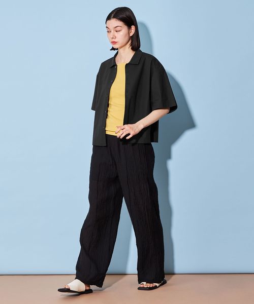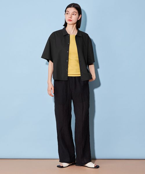 ハイウエストのボトムに一枚でさらりと着ていただくのはもちろん、タンクトップなどとレイヤードして羽織りとして着ていただくのも涼し気でおすすめです。