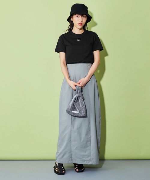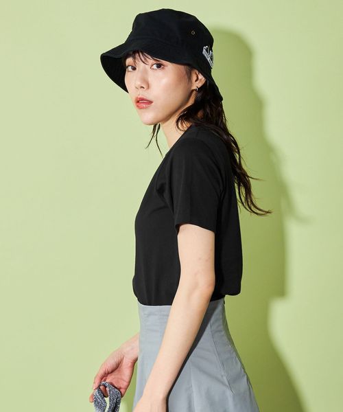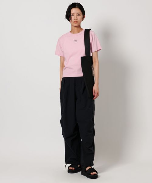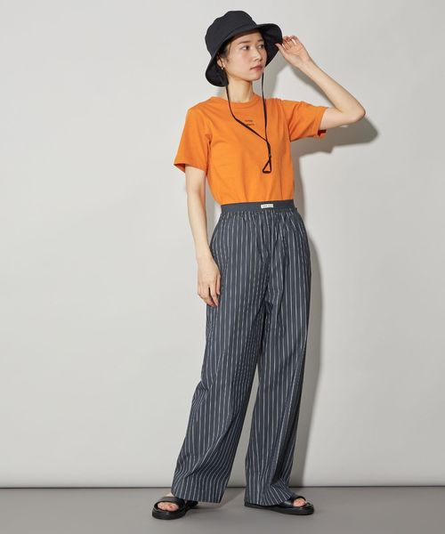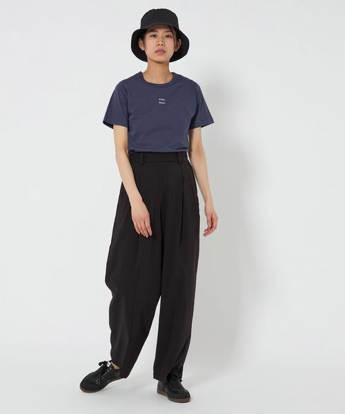 ロゴがアクセントになり、シンプルなコーディネートでもこなれた印象で着用できます。