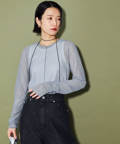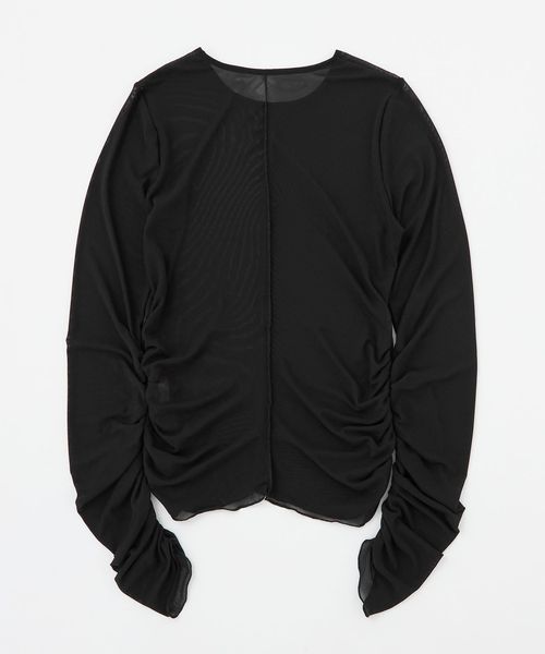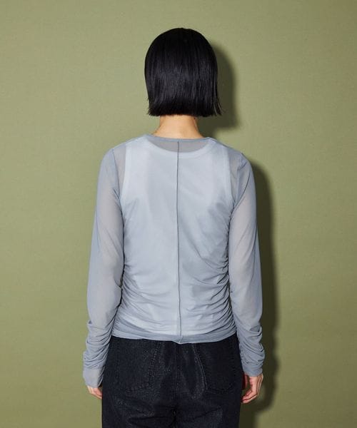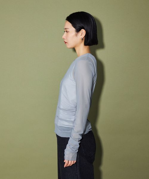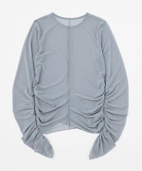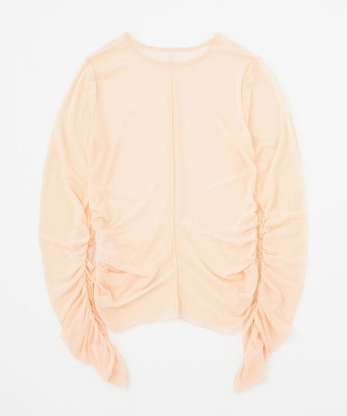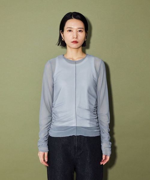 トレンドのシャーリングデザインをチュールネットのやわらかい素材にのせてデイリーに着やすい一枚に。