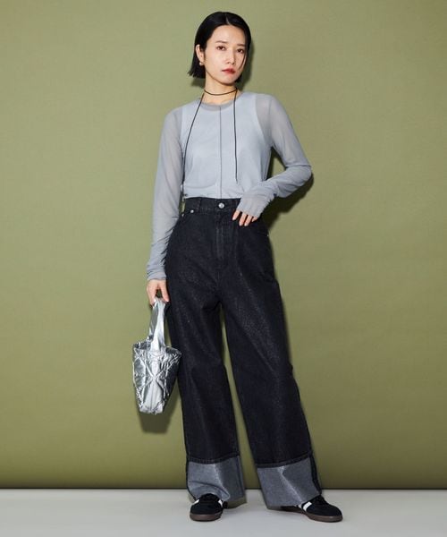 シンプルなデニムやスラックス、スカートを合わせるだけで旬なスタイリングが完成。