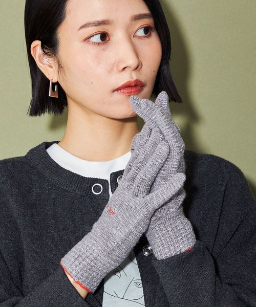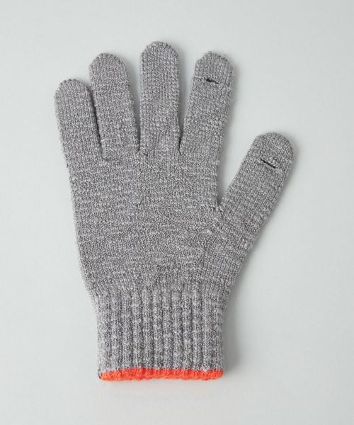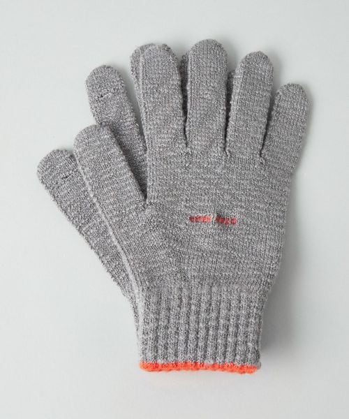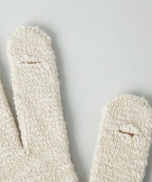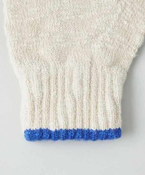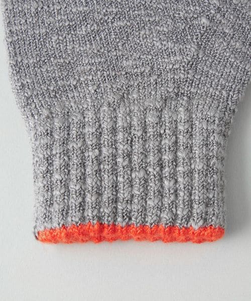 少しネップ調の糸で編みたてて粗野な軍手の表情感を出しつつ、程よいフィット感のあるグローブに仕上げました。