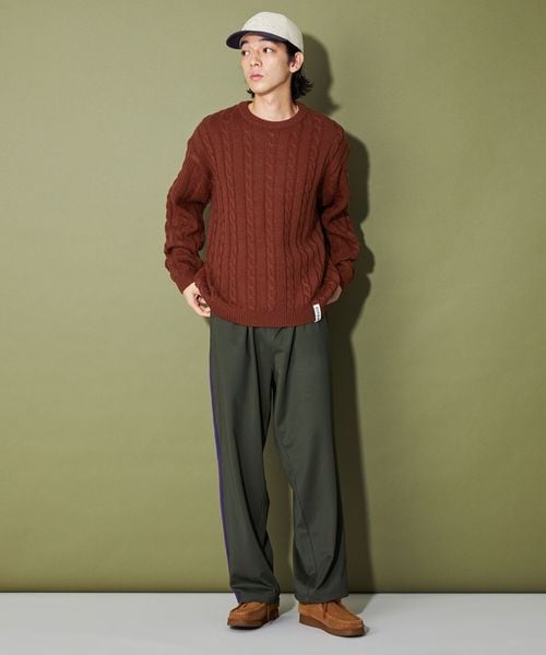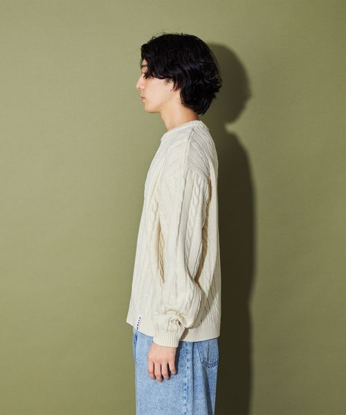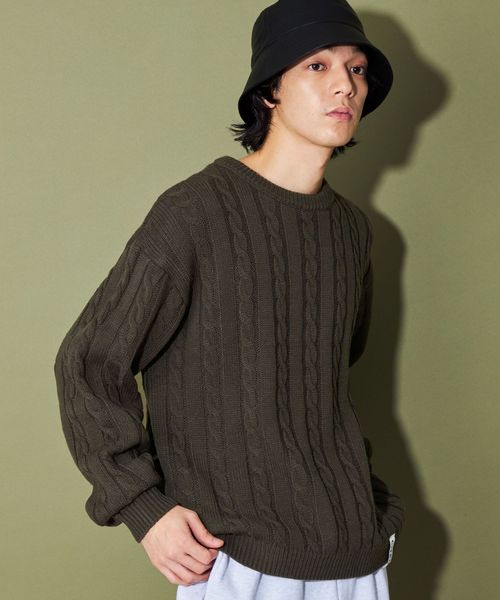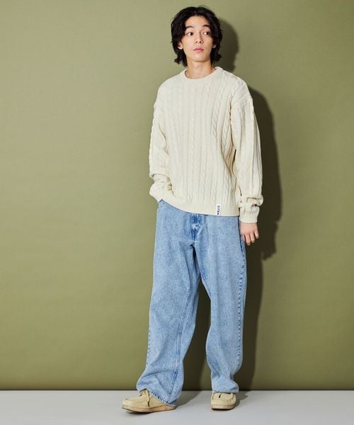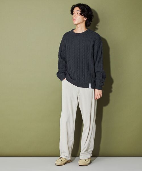 リラックスフィットのシルエットがケーブル柄の雰囲気と相性◎