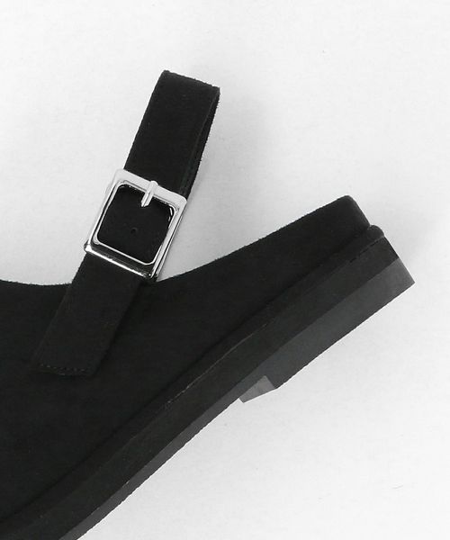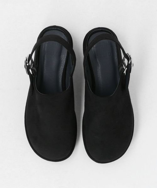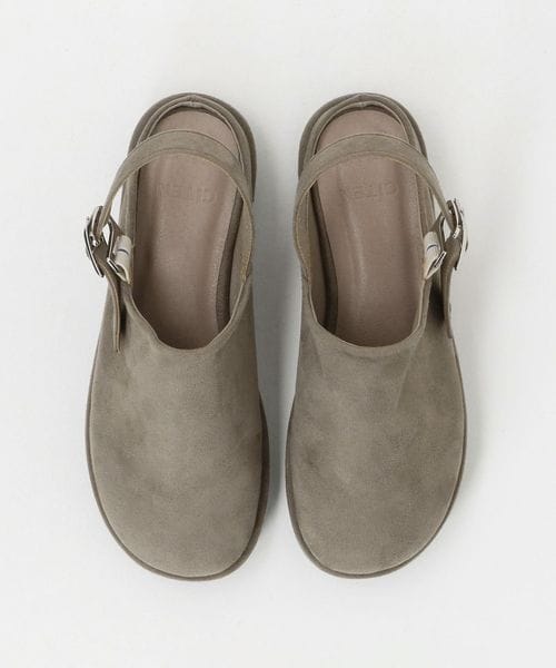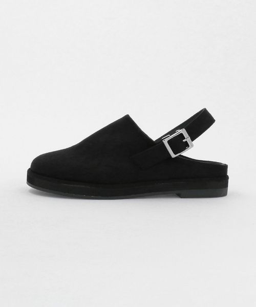 ややボリューム感のある丸みをおびたトゥデザインのクロッグシューズ。