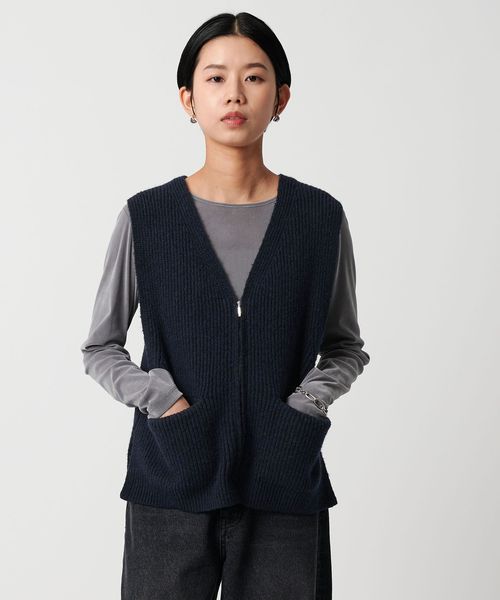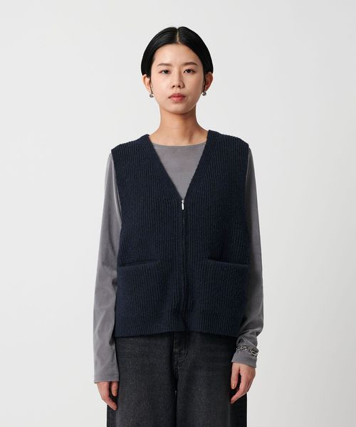 すっきりとしたVネックとジップディティールがアクセントになっています。